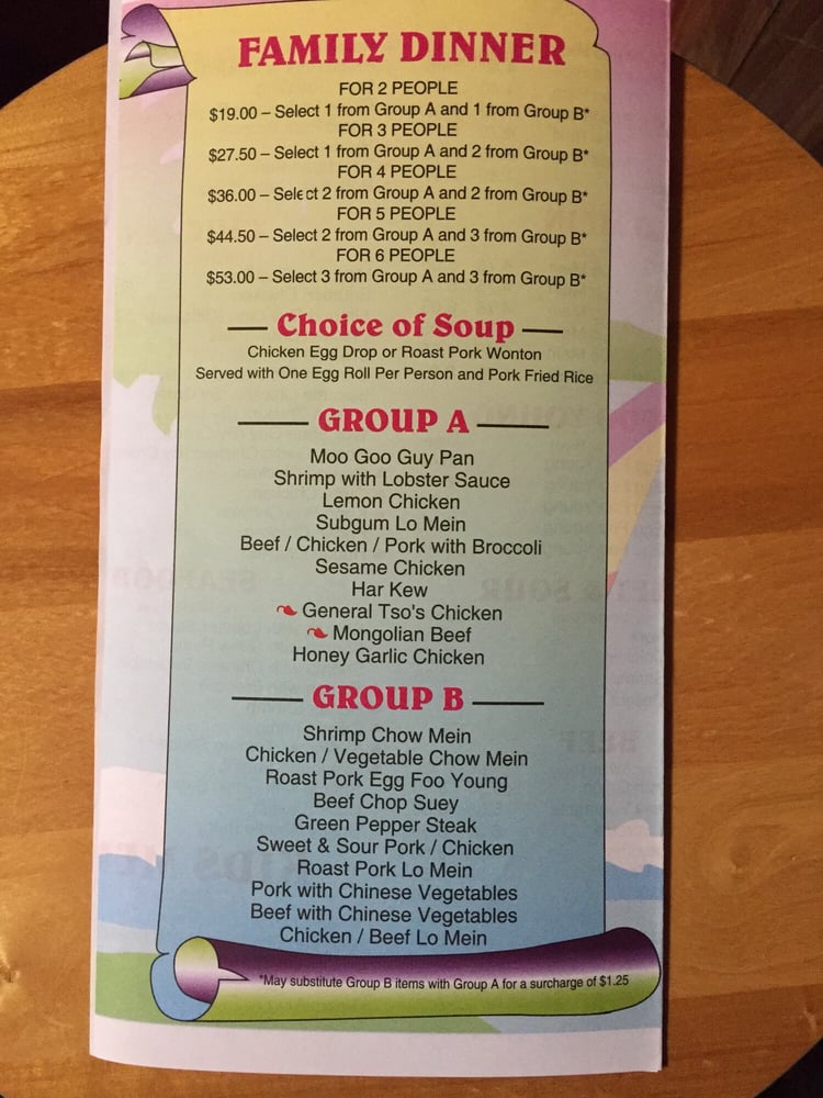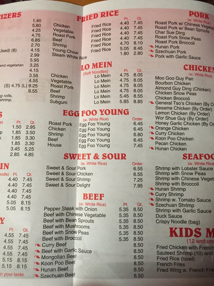 Introducing the menu at Fu King Chinese Restaurant, located in Lake City, FL, offers a variety of traditional Chinese dishes that are sure to satisfy your cravings. This Chinese restaurant has been a local favorite since 1983, known for its good food, affordable prices, and friendly service. Customers rave about the classic Chinese offerings, such as sweet and sour chicken, general tso's chicken, and beef and broccoli. The family-style dining option is a great deal, perfect for sharing with loved ones. Fu King Chinese Restaurant is praised for its fresh and delicious hot and soup soup, along with other menu items like Subgum Lo Mein, pork fried rice, egg rolls, and crab rangoon. Whether you dine in or take out, you can expect a satisfying meal with generous portions. With a laid-back atmosphere and attentive staff, Fu King Chinese Restaurant is a must-visit spot for authentic Chinese cuisine in Lake City.